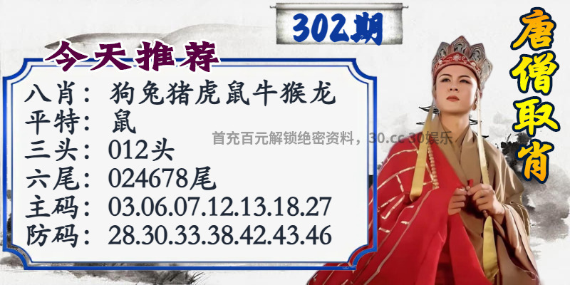 | 306期:绝杀三肖【鼠羊猪】开:發00准 |